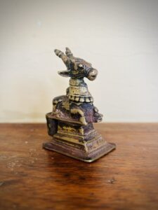 The vehicle of Vishnu. Very nice small image with evidence of a lot of use, exhibiting good vibes. Southern India – early 18th century 3.5cm W x 5.5cm L x 7.5cm H. Price inc GST $850