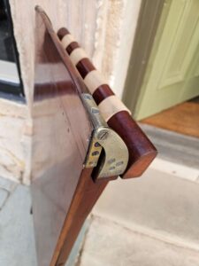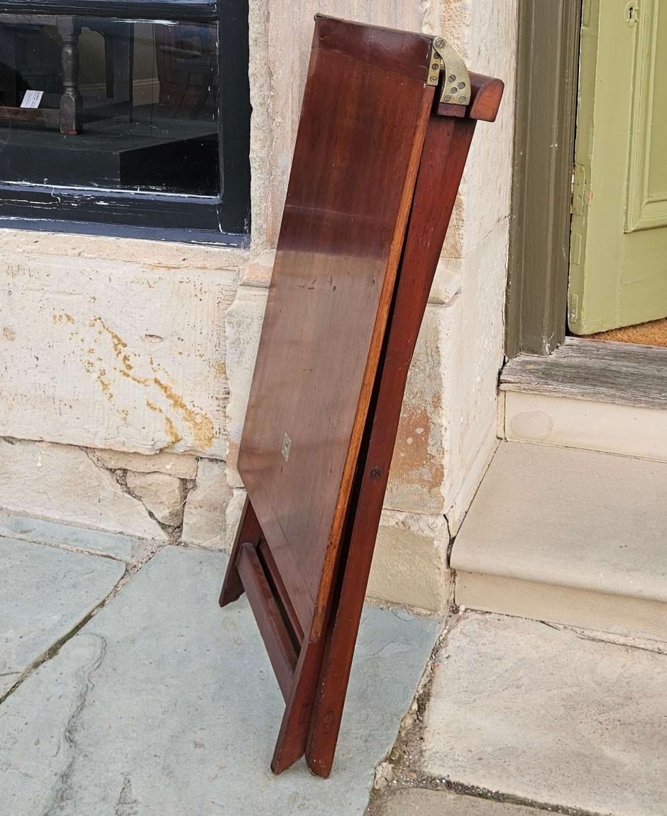 An elegant & very practical over-folding campaign table, with integral stand. Made with good quality timber, the over folding top fixed to the folding stand via heavy curved brass bracket hinges. Ht 79cm x 85cm.W x 49cm D. UK c1830