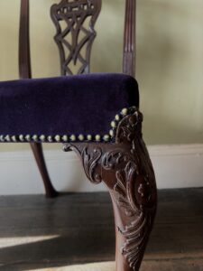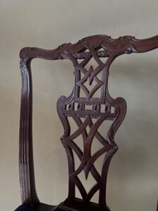 Dublin c 1760. / Mahogany, pine Closely following the Chinoiserie back English types of the period, the hairy carved paw feet are finely carved and typical of Dublin, and much rarer than English furniture. 95cm H x 60cm L x 60cm W. price inc GST $2,750