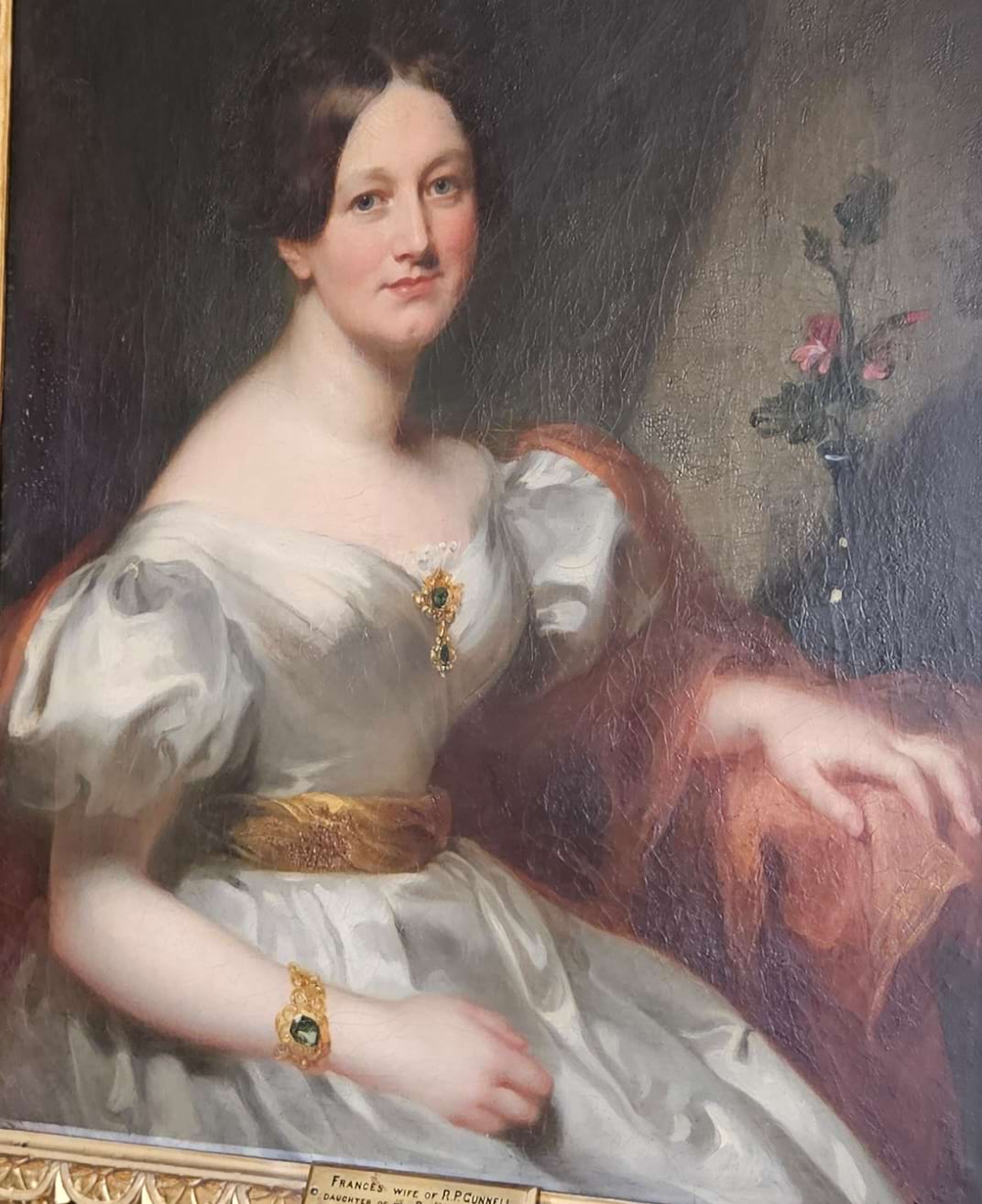 UK c 1835. Oil on canvas.Original water-gilt ‘Florentine’ frame. Born Frances Alington, eldest daughter of Rev.d Wm Alington. Married 1841 Richard Pickering Gunnell.