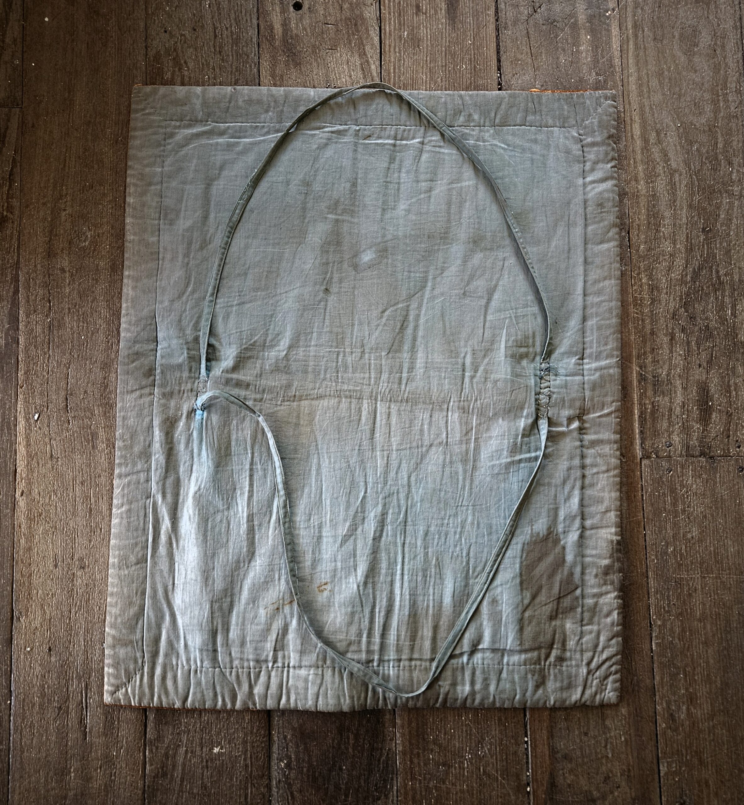 A rare 18th century Tibetan silk velvet saddle cloth. Woven in orange saffron silk with auspicious symbols of Dharma, the flame of Buddha’s teachings and the colour used by monks for their robes to symbolize purity. The quality of the weave would suggest a Buddhist High Monk or Lama, as the original owner. The reverse in faded blue cotton with tying straps. 79cm x 64cm C1750 -1800.